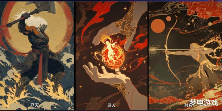 这也意味着,本作用以填充游戏内容的,必然是这些渊远中国文化中各色神话故事,不分时间顺序的超级杂烩——预告片场景中,在挂着九日的扶桑树下,用后羿弓击败刑天,可以看出一种有迹可循的天马行空,倒也是一种对神话杂烩的浪漫演绎。