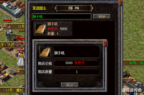 第一,狮子吼(5000)如今魔龙版本已经在三端更新了,对应的高端技能也出现了,如上图所示,这本来自毒蛇服务器的狮子吼是稀罕物,摆摊5000。复古版本中加了这个技能对于战士而言下图效果很不错,对比一下老百区的狮子号有多贵重就知道了。