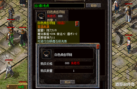 第三,运2道2白色虎齿项链(888)复古版本中的道士职业在PK活动中的地位略显尴尬,对应的装备价值也是三职业中相对较低的。如上图所示,王者荣耀比赛投注这根运2道2白色虎齿项链属性是很不错,但是摆摊只有888,只能怨职业属性加点不热门,如果是运2攻1的属性那就不一样了。
