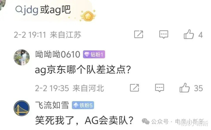 不过还有少量网友猜测是JDG和AG,说实话这个有点离谱,JDG不缺这点钱(JDG背后京东集团非常豪横,人家只想要JDG打响京东名声,可不会把俱乐部打包卖给别人,而且JDG没有历史荣誉,所以不符合),AG王朝期间就已经赚得盆满钵满更不缺钱(AG已经王朝了两年之久,期间赚的钱不知几何,老五人组虽然暂时分别,但是还是能打,AG不可能放弃)。