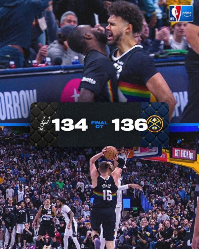 北京时分4月5日,丹佛掘金主场加时136比134险胜圣安东尼奥马刺,斥逐敌手11连胜的同期,我方成绩8连胜。掘金球星约基奇狂砍40分8篮板13助攻0荒诞3盖帽,对面的文班亚马也拿到34分18篮板7助攻5盖帽1荒诞,两位MVP候选东说念主献艺了一场火星撞地球般的精彩对决。