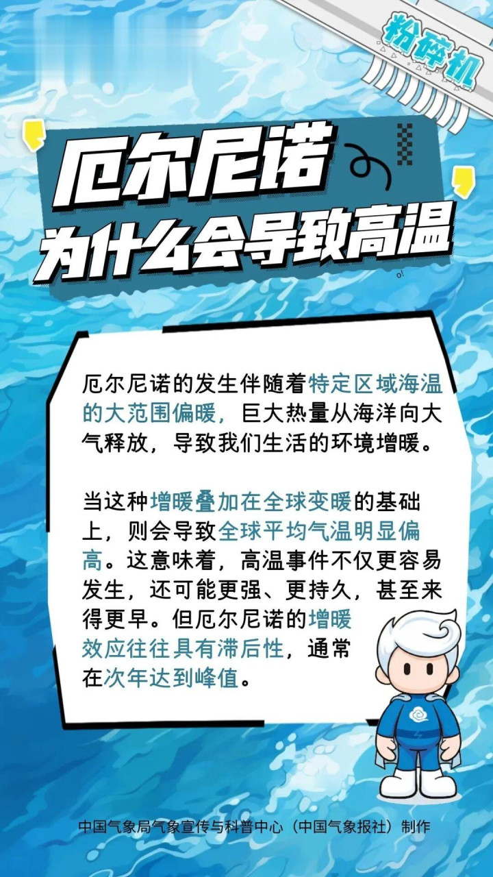 王雅琦进一步评释注解,各人变暖并非均匀升温,大气温度每升高1°C,其抓水才气增多约7%,这意味着高温加重地表挥发,使干旱发展更快、强度更强、抓续时候更长;而一朝发生降水事件,大气中异常承载的水分可导致更顶点的暴雨和激流。当各人变暖催生平素的高温热浪与厄尔尼诺事件重叠时,可能会出现“配景热浪与厄尔尼诺增温”的复合顶点高温事件,其强度与影响限制远超单一因子的作用。此外,各人变暖通过增强水轮回的强度与波动性,使风物情景在“干”与“湿”之间的波折更平素、剧烈和顷刻间,重叠厄尔尼诺事件可能会增多旱涝急转风险。