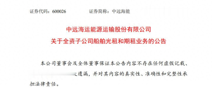 1月30日晚间,中远海运能源运输股份有限公司(以下简称“中远海能”)发布《关于全资子公司船舶光租和期租业务的公告》。