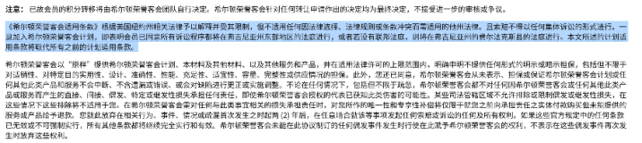 《希尔顿荣誉客会适用条目》则称,条目根据好意思国纽约州相干法律给以确认并受其限制,但不适用任何因法律采选、法律法则或条目打破而需适用的他州法律。且索赔不得以任何集体诉讼的时势进行。一朝加入希尔顿荣誉客管帐划,即标明会员已容许通盘诉讼设施齐将在弗吉尼亚州东部地区的法庭进行,粗犷若莫得联邦法庭,则将在弗吉尼亚州的费尔法克斯县的法庭进行;希尔顿荣誉客会以“原样”提供希尔顿荣誉客管帐划、本材料过火他材料,以过火他劳动和居品,并在适用法律许可的上限范畴内,明确声名不提供任何时势的昭示或泄漏担保。