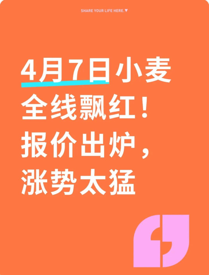 我在食粮行业干了快十年,每天雷打不动第一件事等于刷小麦行情。4月7日一早打开报价系统,真被目下这一幕惊到了——世界小麦商场全线飘红,价钱集体往上冲,涨得异常猛。从河南、山东、河北这些中枢主产区,到江苏、安徽、东北,不论是面粉厂到厂价、粮库收购价如故下层粮点报价,全在涨,商场一下子就热起来了,生意商惜售、农户不雅望,抢粮的氛围异常浓。